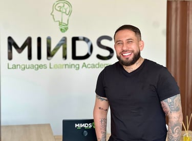 Fabián Trespalacios, fundador de Minds Language Learning Academy y uno de nuestros docentes líderes. Con más de 20 años de experiencia en la enseñanza del inglés, es licenciado en lengua extranjera y cuenta con un nivel C2, el más alto en dominio del idioma.